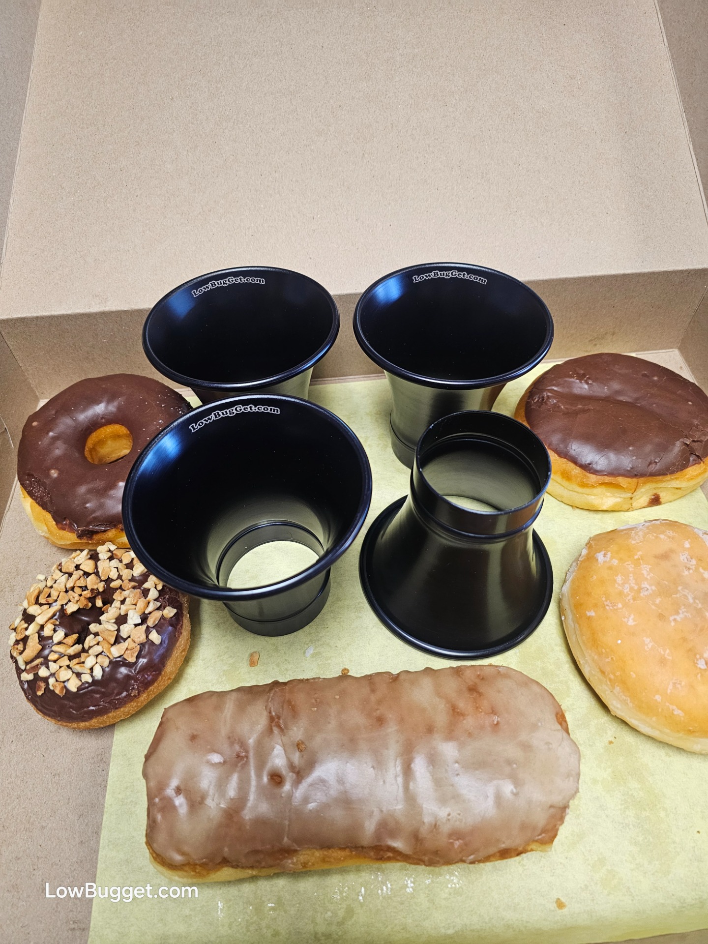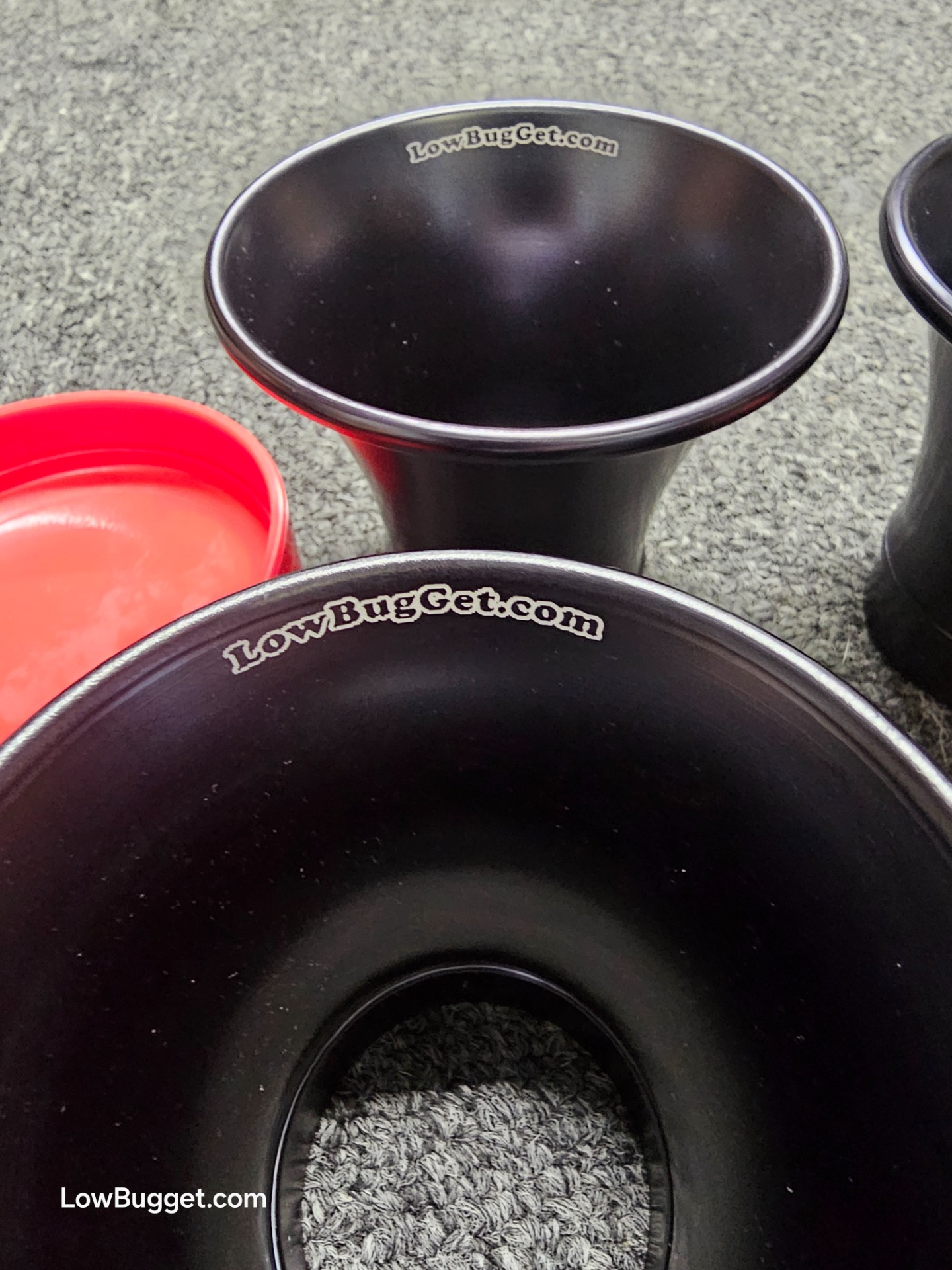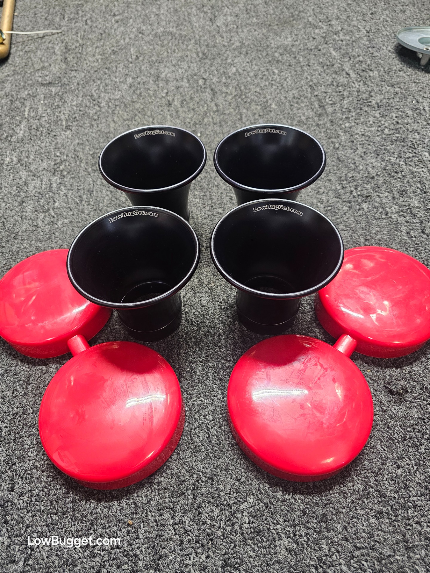 4x Black anodized LowBugGet PRO-Stacks that fit Weber IDA, Empi IDA and most other IDA copies.